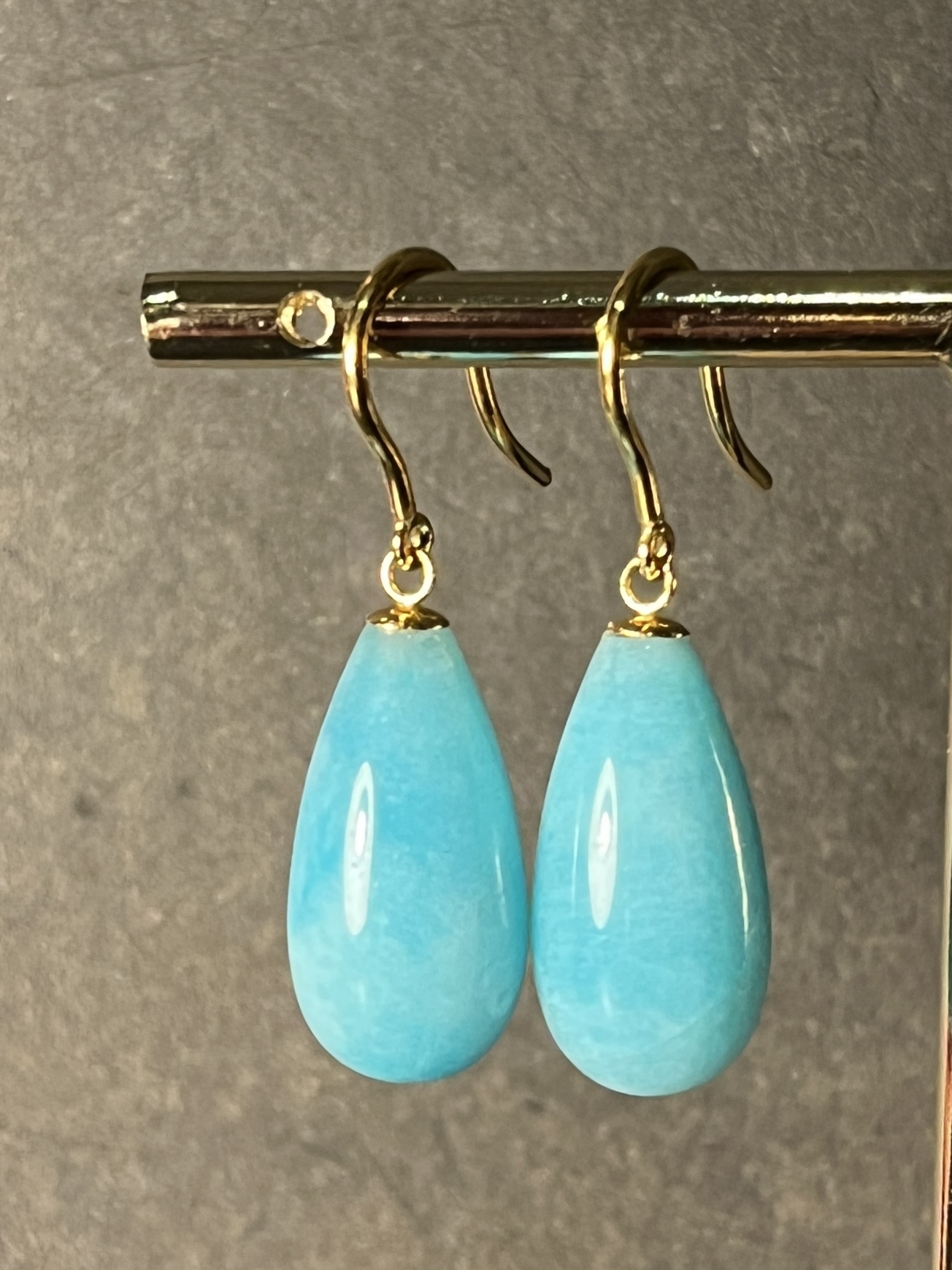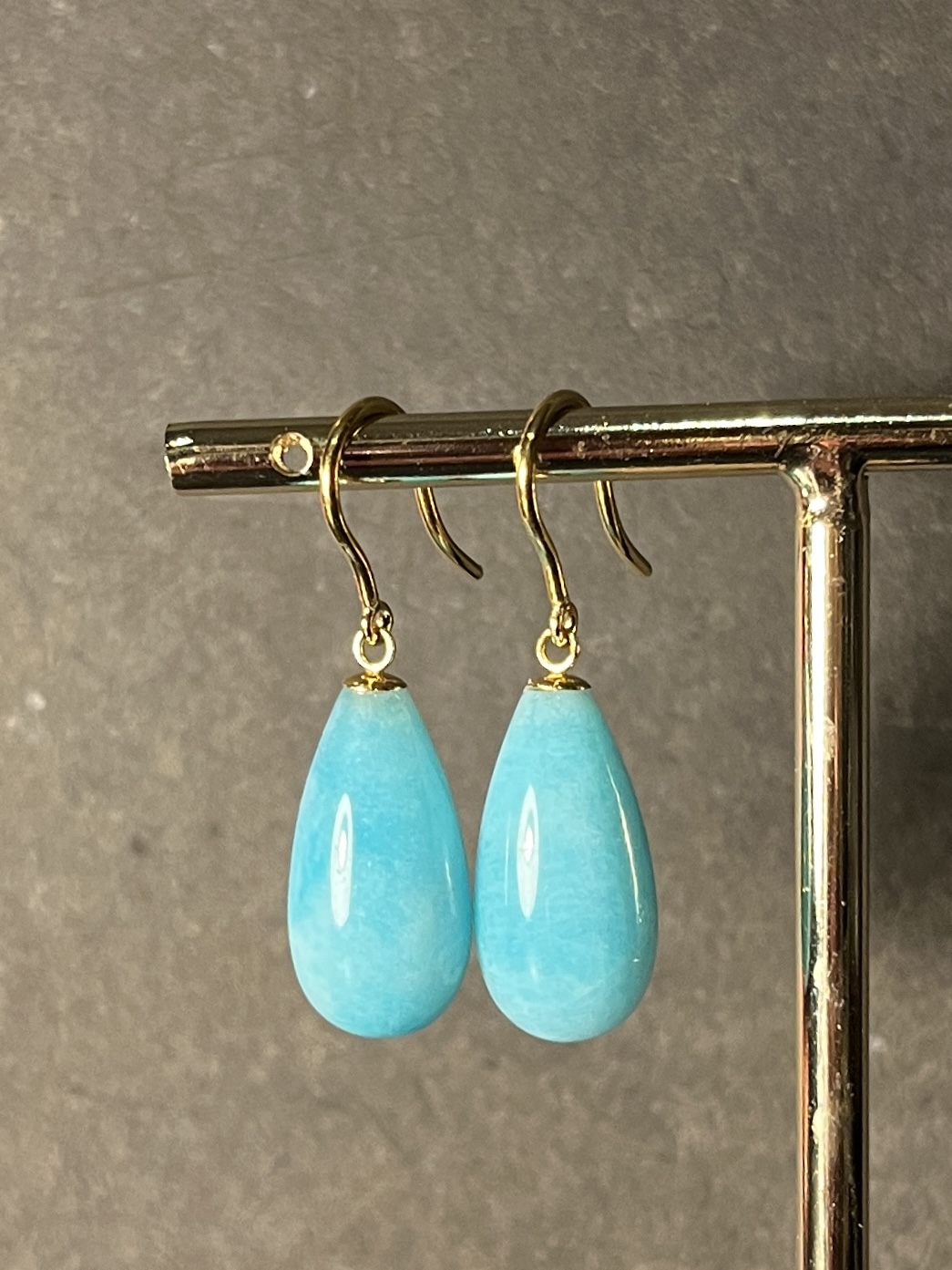 Oorbellen met amazoniet pegels, aan zilver vergulde haakjes
